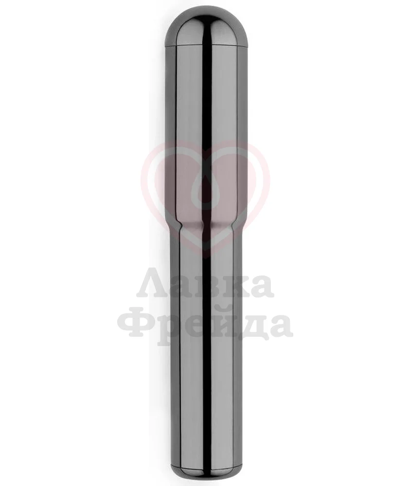 Вы точно почувствуете себя обладателем элегантного сокровища, как только ваш взгляд упадёт на её чёрную хромированную поверхность. Вибропуля имеет расширяющийся кончик и более тонкую ручку, за которую удобно держаться. Сам корпус выполнен из медицинского металла, который отлично проводит вибрацию и разные температуры, и классно выглядит.