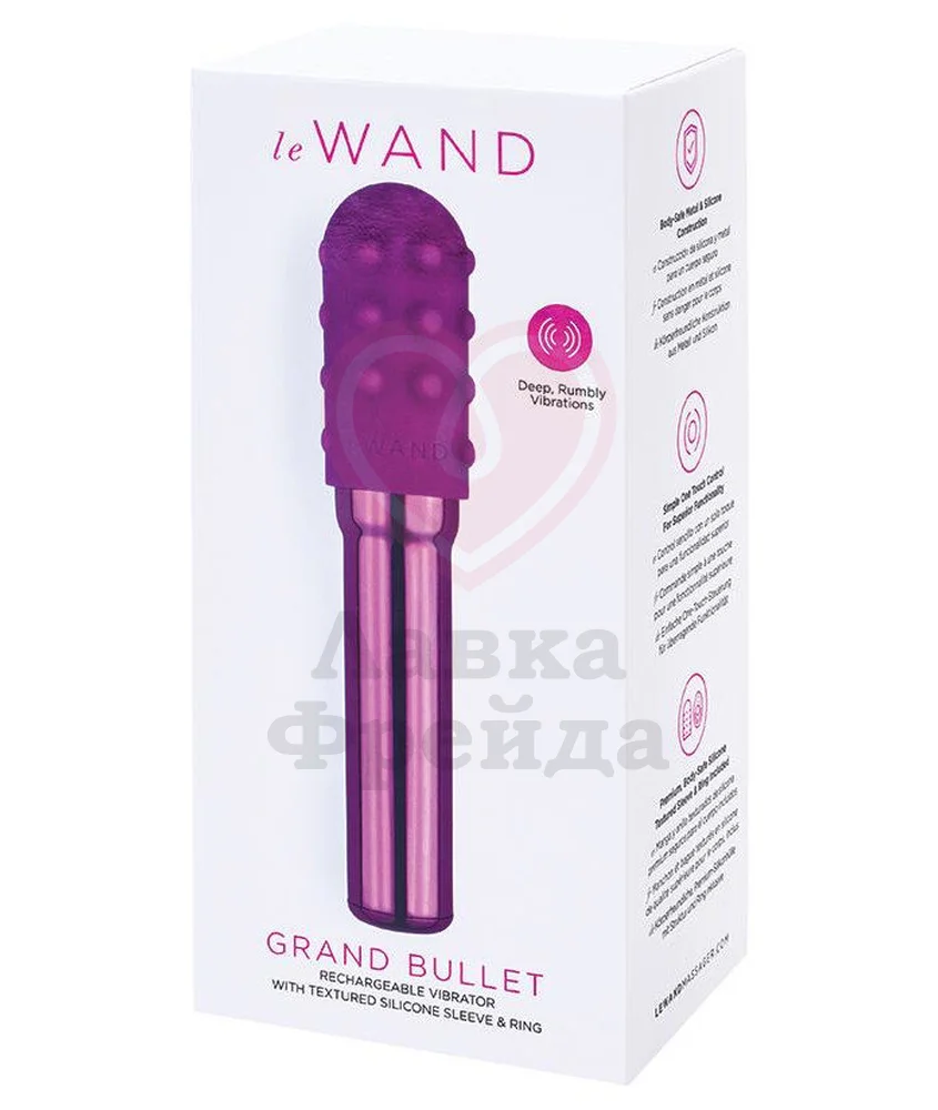В серии Le Wand Chrome есть мини-вибратор, напоминающий своими очертаниями крохотный вибромассажёр, благодаря которому компания Le Wand и получила свою популярность. Это стильная вибропуля Le Wand Grand Bullet, которая чуть больше по размерам, чем малая Le Wand Bullet и на 40% мощнее!Вы точно почувствуете себя обладателем элегантного сокровища, как только ваш взгляд упадёт на её хромированную поверхность. Вибропуля имеет расширяющийся кончик и более тонкую ручку, за которую удобно держаться. Сам корпус выполнен из медицинского металла, который отлично проводит вибрацию и разные температуры, и классно выглядит. А вот две дополнительные насадки сделаны из нежного силикона — одна из них надевается на голову пули, а другая круглая и рельефная, продевается сквозь пулю. Поэтому девайс подходит для абсолютно любой стимуляции — вульвы, головки клитора и входа во влагалище, где находится большее количество нервных окончаний, а соответственно — благодаря этим зонам вы получаете больше удовольствия. Для более нежного проникновения можно использовать лубрикант на водной основе, который сочетается с любыми материалами игрушки.Le Wand Grand Bullet обладает ещё более мощным мотором, сила которого выше, чем у меньшей версии на 40% - а вот количество режимов вибрации сохранилось: 11 различных вариантов и 4 вида интенсивностей. Игрушка водонепроницаема, её можно погружать в воду максимум на 50 см и держать не дольше 30 минут. Насадки удобно очищать отдельно от пули, но все её части легко моются с мылом и специальным очистителем для девайсов. А магнитная зарядка и вельветовый мешочек для хранения идут в комплекте.Особенности:Роскошный дизайнКомпактный размер11 режимов вибрации4 вида интенсивностиВодонепроницаемостьМагнитная зарядка1 час работы при полной зарядкеБлокировка от случайного нажатияКомплектация:Вибропуля Le Wand Grand BulletДве силиконовые насадкиЗарядка USBМешочек для хранения