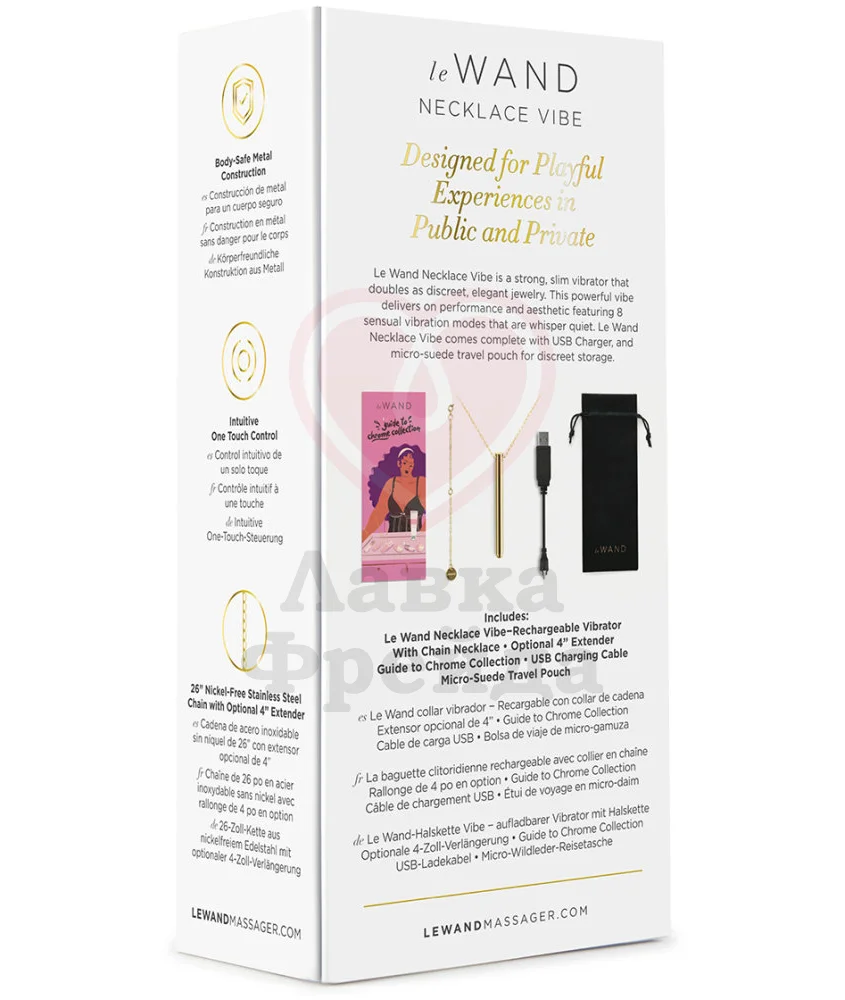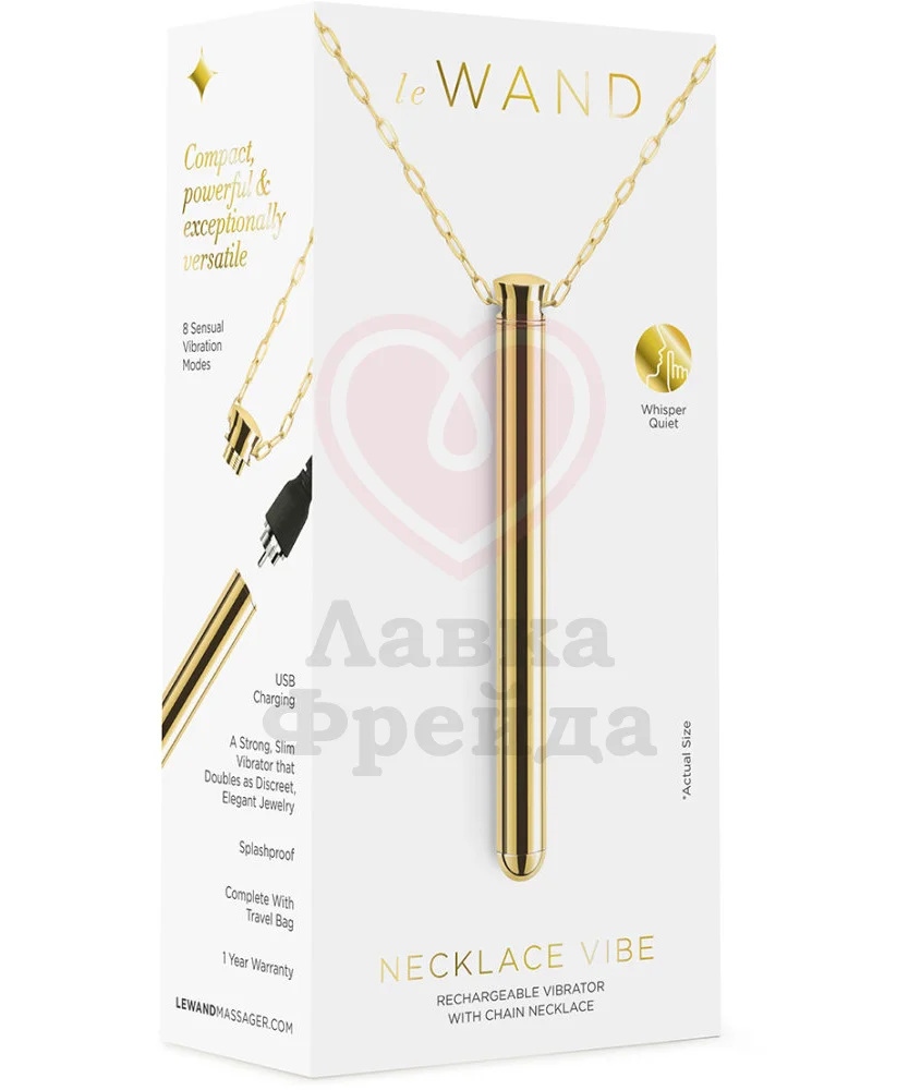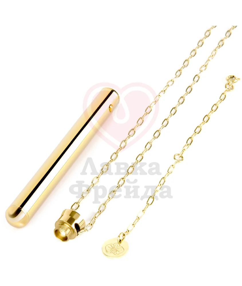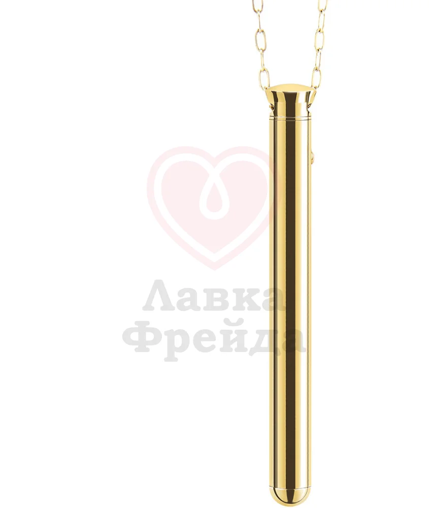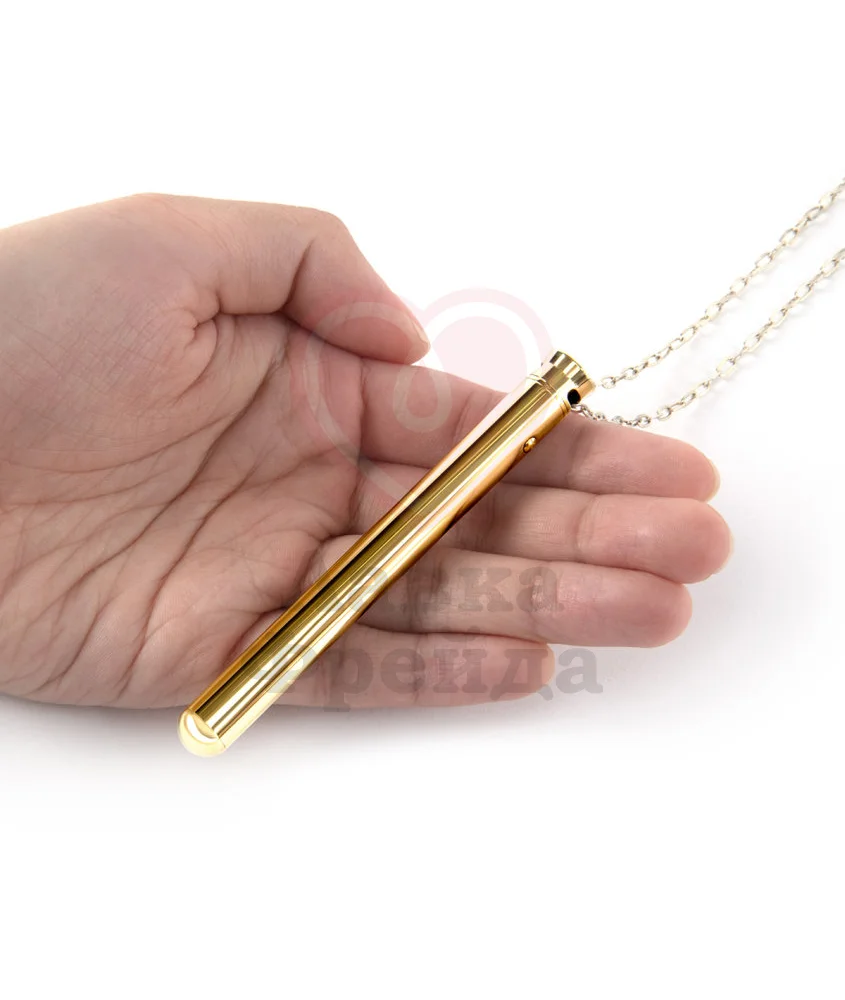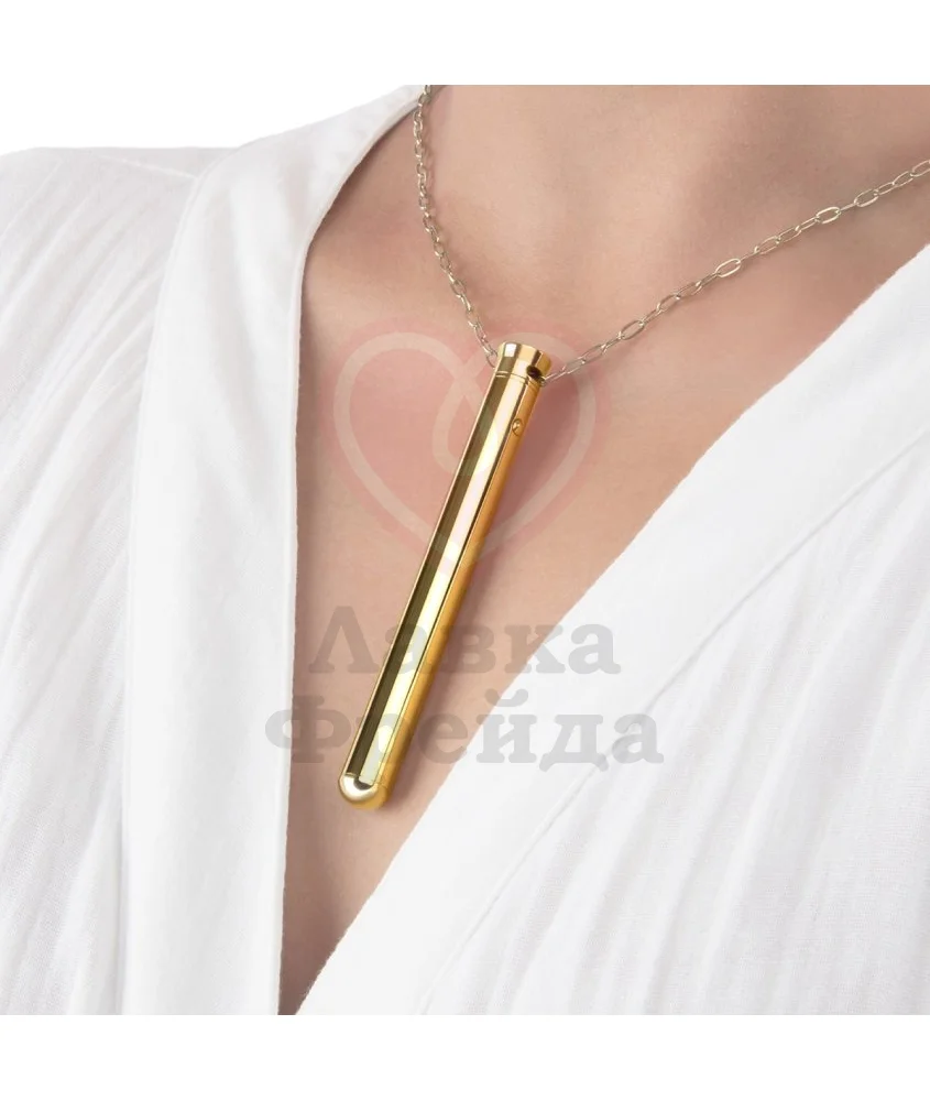 Вибратор Le Wand Vibrating Necklace Golg может быть необычным украшением вашего образа - тонкая палочка золотого цвета с длинной цепочкой из нержавеющей стали выглядит как оригинальное украшение, и никто не догадается об истинном предназначении игрушки. Округлый кончик девайса предназначен для стимуляции клитора - можно точечно прикладывать вибратор или круговыми движениями массировать нежную область или класть игрушку по всей длине половых губ, добиваясь более ярких ощущений от игры.