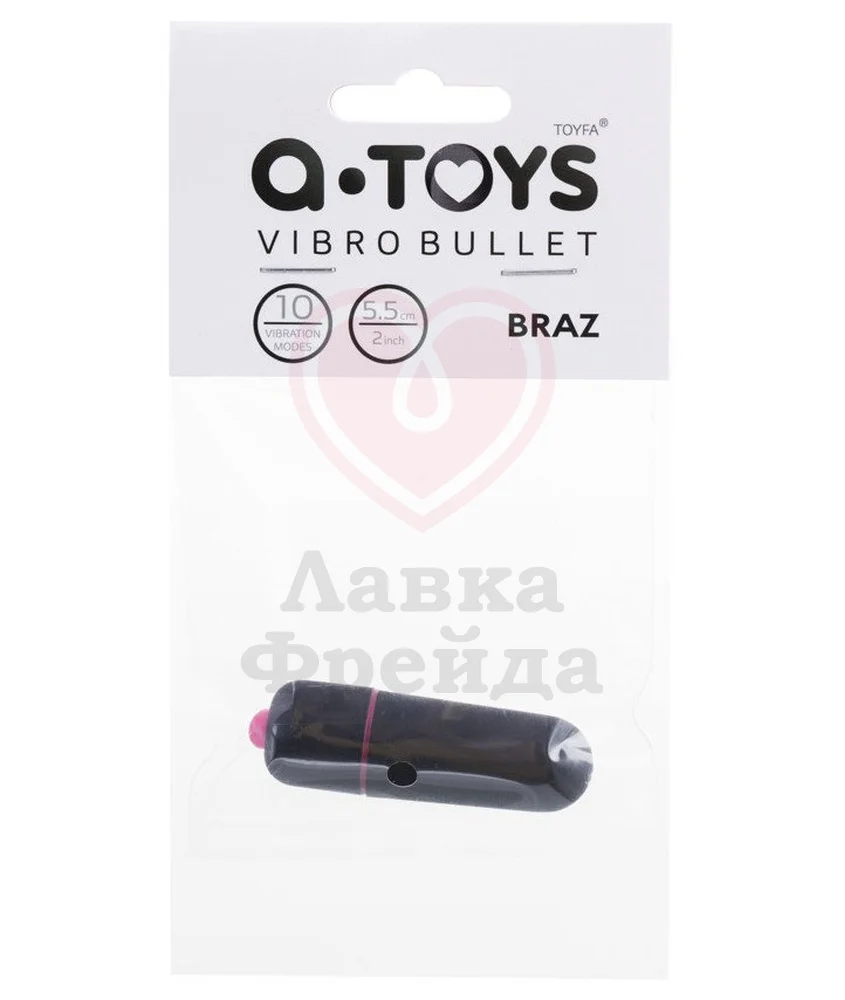 Компактная и мощная вибропуля A-Toys Braz выполнена из прочного материала и подойдет для любой внешней стимуляции. Длина игрушки составляет всего лишь 5,5 см, а диаметр 1,7 см: такая малютка уместится в любую сумочку, косметичку или кармашек. Управляется нажатием одной кнопки на основании и предоставляет на выбор 10 режимов вибрации. Работает от 3 батареек L1154F.