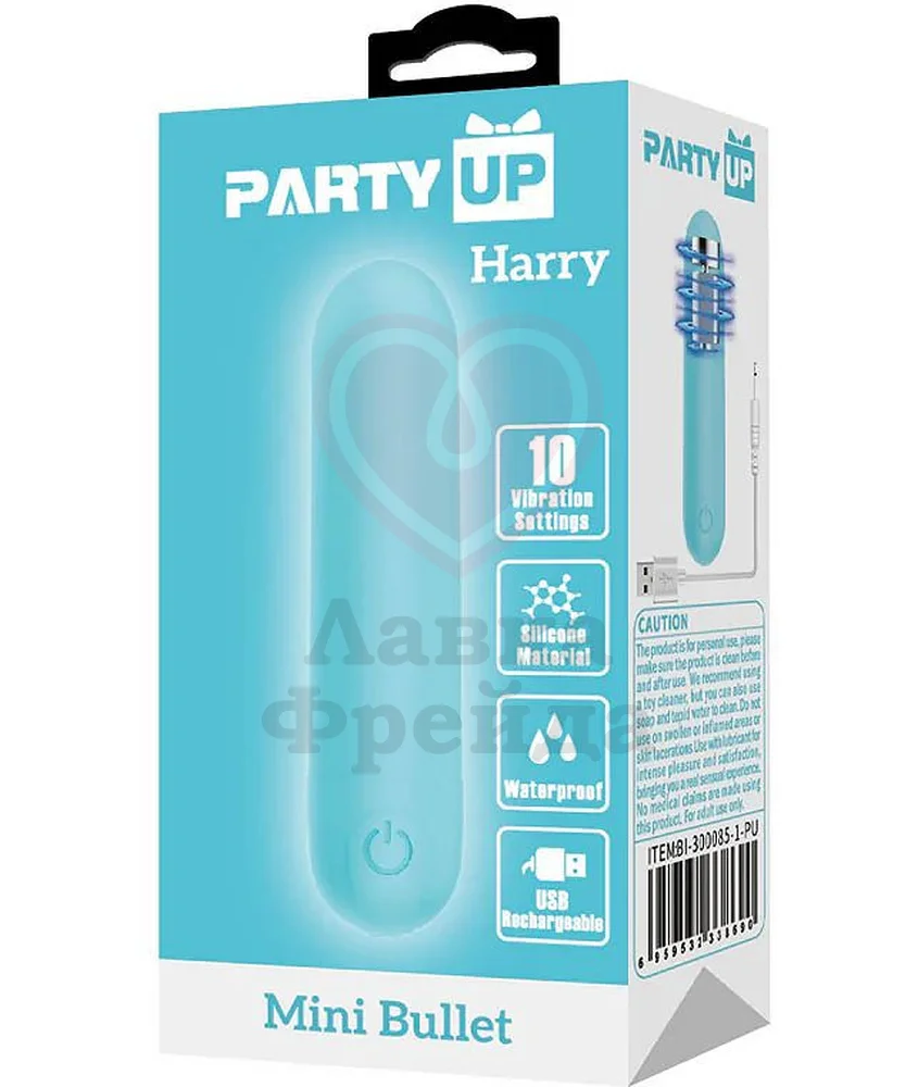 Вибропуля Party Up Harry - компактный девайс для точечной стимуляции внешних эрогенных зон. Мощный мотор, который перезаряжается через USB кабель, отвечает за работу 10 режимов вибрации разной интенсивности. Аксессуар можно использовать соло, например для стимуляции клитора, либо комбинировать с секс-игрушками, в которых есть специальное отверстие для вибропули - анальные пробки, мастурбаторы и пр.