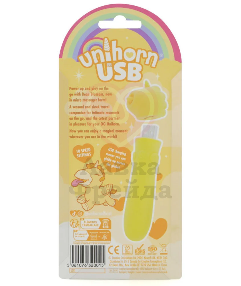 Материал единорога - качественный медицинский силикон, совместимый с лубрикантами только на водной основе. Миниатюрную игрушку легко спрятать в любой женской сумочке или даже косметичке. После использования, аккуратно очистите небольшим количеством тёплой воды с мылом, либо обработайте специальным антибактериальным спреем.