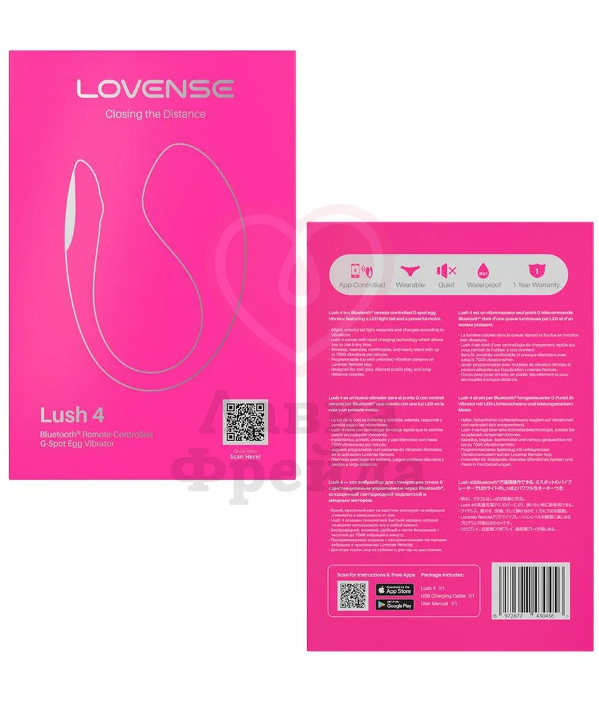 Игрушка Lush 4 идеально подходит для игр с партнером на расстоянии или в публичных местах. Приложение Lovense Remote для смартфонов на iOS (версии 10.0 и выше) или Android (версии 4.3 и выше) позволяет управлять девайсом из любой точки планеты. К тому же, именно приложение открывает разнообразные режимы вибрации: