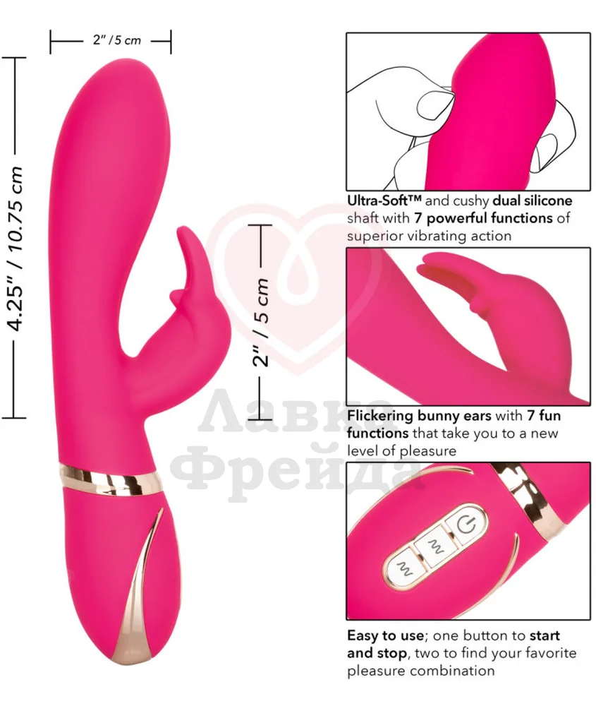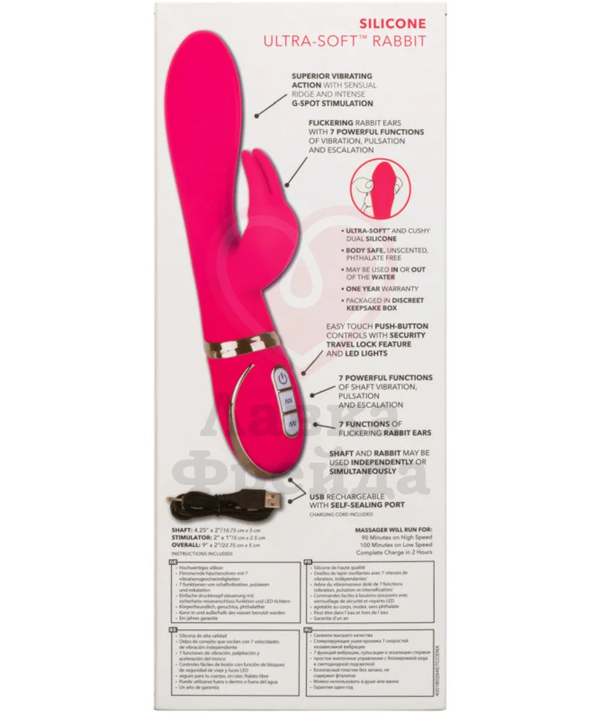 Вибратор-кролик Signature Ultra-Soft Rabbit имеет нежную головку и 7 режимов вибрации. Управление происходит с помощью 3-х кнопок с LED-подсветкой, расположенных на основании девайса. Основной ствол, длиной 11 см, качественно стимулирует внутренние эрогенные зоны, а отросток длиной 5 см с двумя движущимися ушками нежно ласкает клитор.