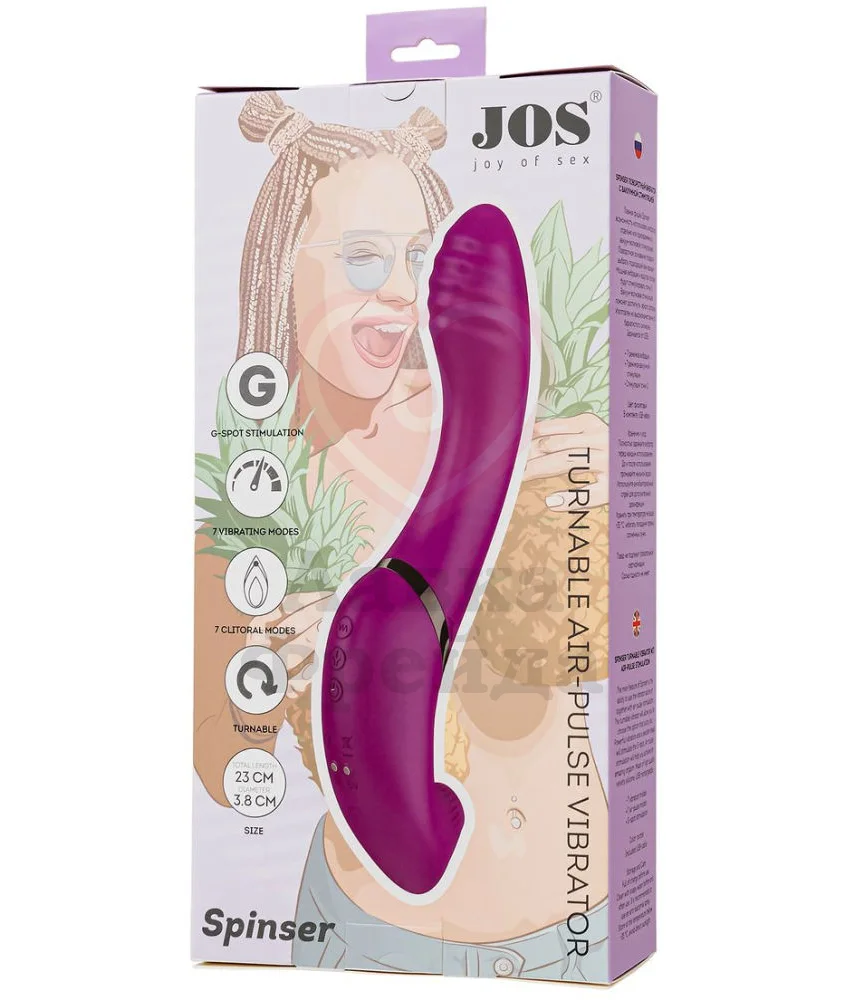 Вибратор Jos Spinser даёт возможность одновременно использовать вагинальную и клиторальную стимуляцию, а также стимуляцию промежности. Основной ствол имеет фактурную, объемную головку, которая обеспечивает точечное воздействие на самую отзывчивую внутреннюю эрогенную область - зону G. А маленький отросток будет нежно ласкать клитор пульсирующими воздушными толчками.