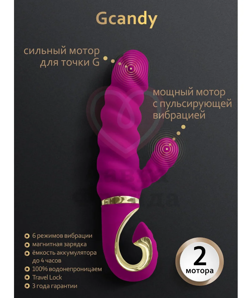Яркий малиновый Gcandy напоминает своим дизайном уже знакомые модели вибраторов Gvibe. И это делает его только лучше. К примеру, от Gjack 2 новая версия явно заимствует рельефный анатомический ствол — такие рёбра особенно приятно ощущаются вместе с глубокой вибрацией.