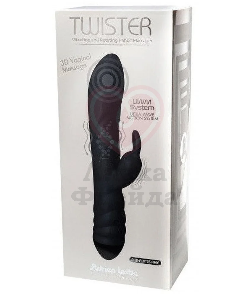 Игрушка Adrien Lastic Twister обладает сразу несколькими функциями: вибрацией, ротацией шариков и небольшим клиторальным кончиком для двойной стимуляции. Общая длина девайса 23 см, длина проникновения - 12 см, а максимальный диаметр - 4 см. Вибратор обладает особой технологией Ultra-Wave Motion, обеспечивавшие движения шариков в основной части игрушки для максимального удовольствия. Ротацию можно использовать как вместе, так и отдельно от вибрации.