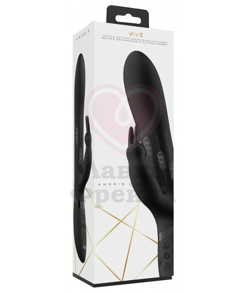 Вибратор Amoris порадует не только классической вибрацией, но и двигающимися верх и вниз шариками, которые обеспечат особую стимуляцию. Два кончика прекрасно дополняют друг друга для максимально ярких оргазмов. Вагинальный отросток имеет плавные очертания, длину проникновения 13, 5 см и максимальный диаметр в 3,5 см. Небольшой клиторальный кончик же обладает двумя ушками для эффективного воздействия. Вибрация основной и клиторальной части имеет по 10 режимов для каждого участка, управляются они отдельно. Также игрушка оснащена специальной кнопкой максимальной мощности, которую легко нажать в нужный момент.