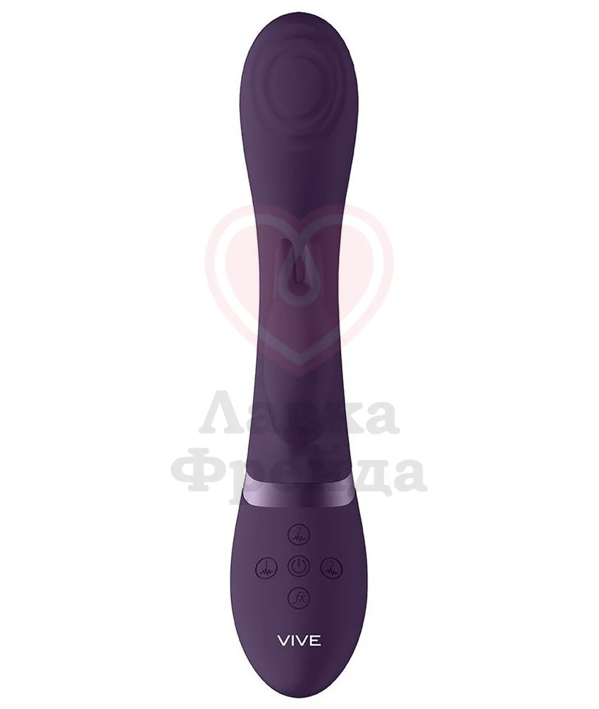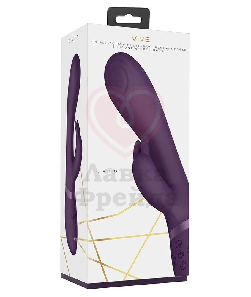 Vive Cato — это целых три мотора, два функциональных кончика и два вида воздействия в одной игрушке. Вагинальный отросток имеет длину проникновения 11 см, максимальный диаметр 3,5 см, его главной особенностью является легкий изгиб и небольшой рельеф для дополнительной стимуляции. Сам кончик обладает двумя режимами — 10 ритмов классической вибрации и 10 вариантов пульсирующих волн. Для наиболее ярких ощущений у игрушки есть и клиторальный кончик с двумя маленькими ушками и 10 вибро-паттернами. Управление для всех функций отдельное, а также есть специальная кнопка, чтобы включить максимальную скорость всех частей сразу.