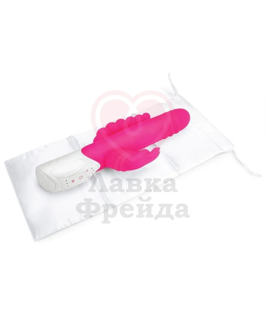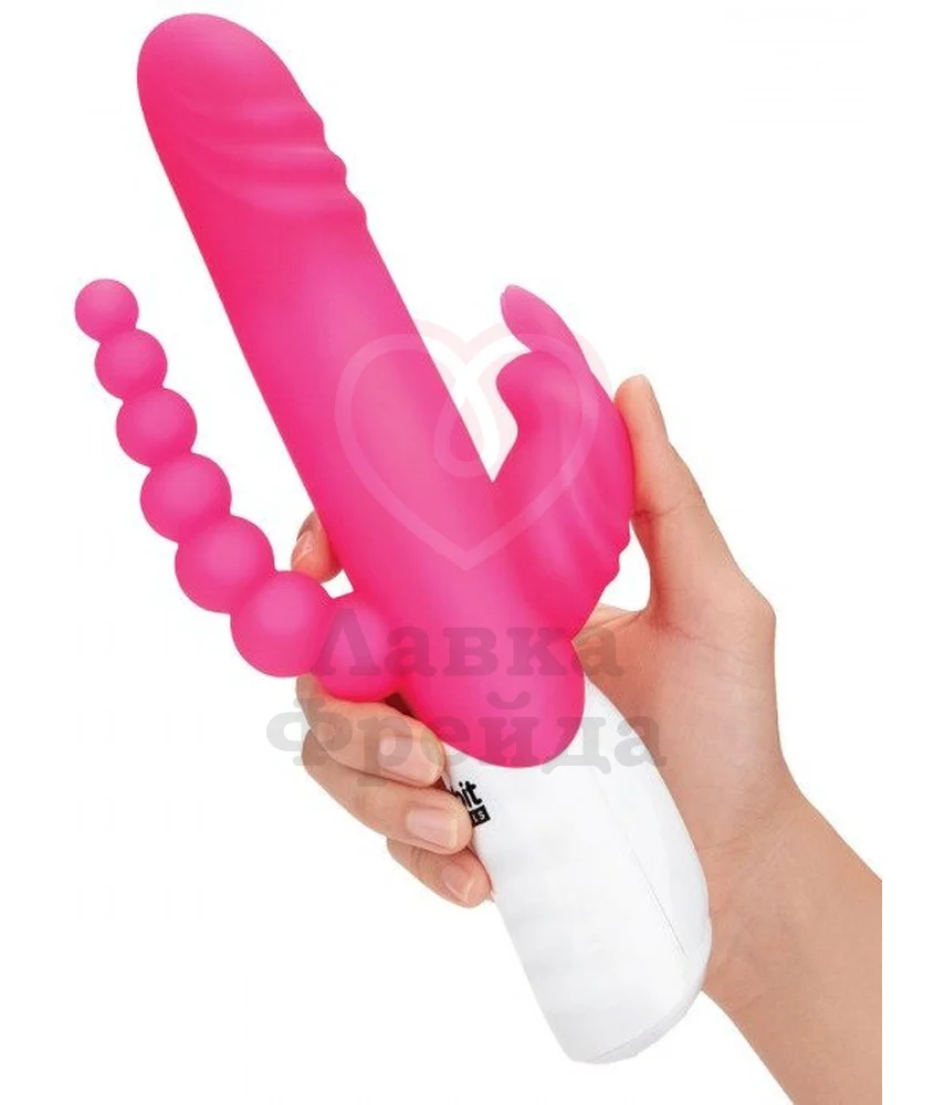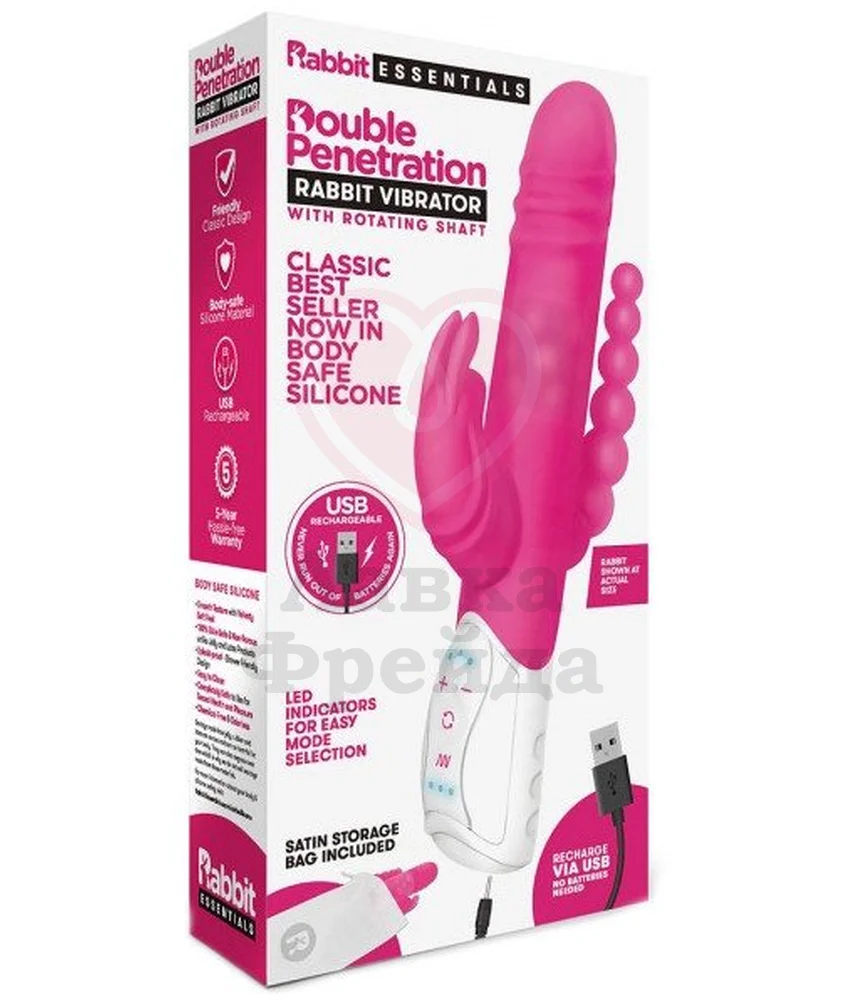 Хай-тек вибратор Double Penetration Rabbit Vibrator розового цвета обладает всеми возможными вариантами для удовольствия: это кролик для вагинальной, клиторальной и даже анальной стимуляций. А внутри основной части также есть ряды вращающихся шариков для дополнительных впечатлений.