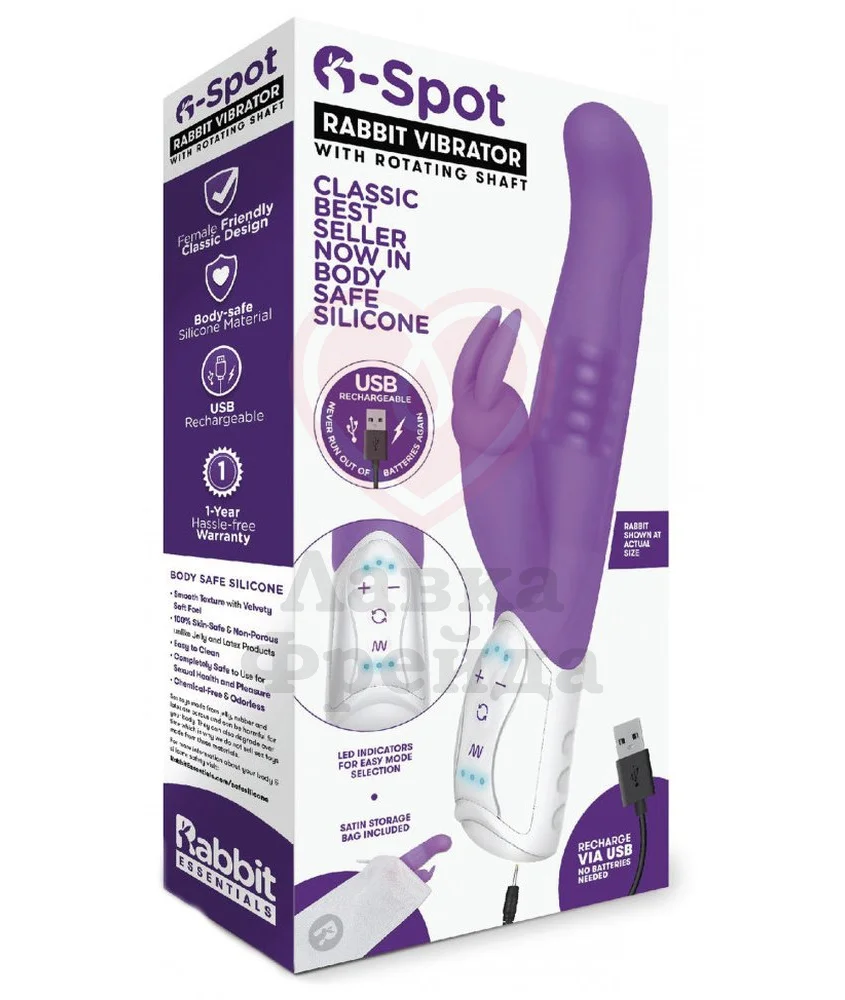 Вибратор G-Spot Rabbit создан специально для всех самых чувствительных зон — точки G и головки клитора. Вагинальная часть имеет специальный узкий кончик с изгибом, а вот клиторальная обладает мягкими ушками для усиленной стимуляции. Внутри большей части вибратора находятся ряды объёмных бусин, которые управляются при помощи 3 вариантов ротации, добавляя вашему использованию игрушки особенно приятных и необычных ощущений.