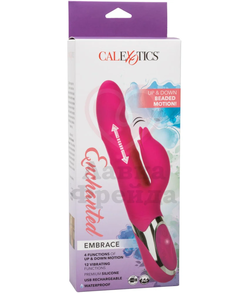 Вибратор-кролик Enchanted Embrace изготовлен из нежного медицинского силикона, совместимого с лубрикантами на водной основе. Игрушка эффективно стимулирует самые чувствительные эрогенные зоны 12 уровнями вибрации разной интенсивности и 4 режимами пенетрации бусинками по всей длине ствола. Наслаждение усиливает стимуляция клитора небольшим отростком, выполненным в виде бутона.