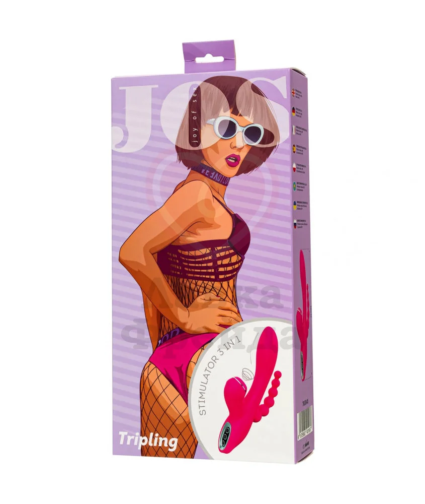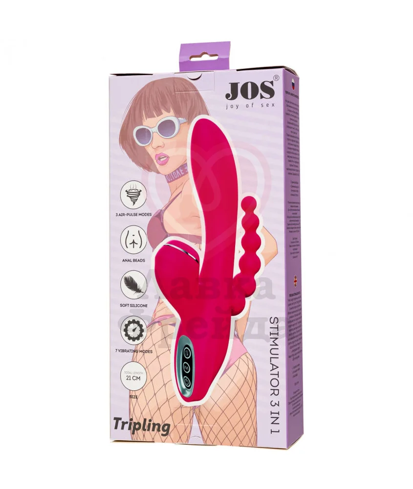 Вибратор Jos Tripling одновременно охватывает все эрогенные зоны - вагину и зону G, клитор и анус, обеспечивая тройное удовольствие от любовной игры. Вагинальный ствол слегка загнут, а крупная головка с заострённым кончиком обеспечивает точечную стимуляцию зоны G. Анальная ёлочка состоит из шести постепенно увеличивающихся в размере шариков, которые идеально подходят для медленного, аккуратного введения.