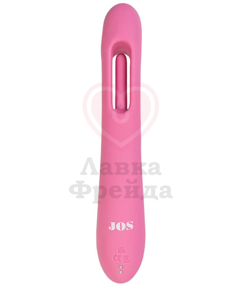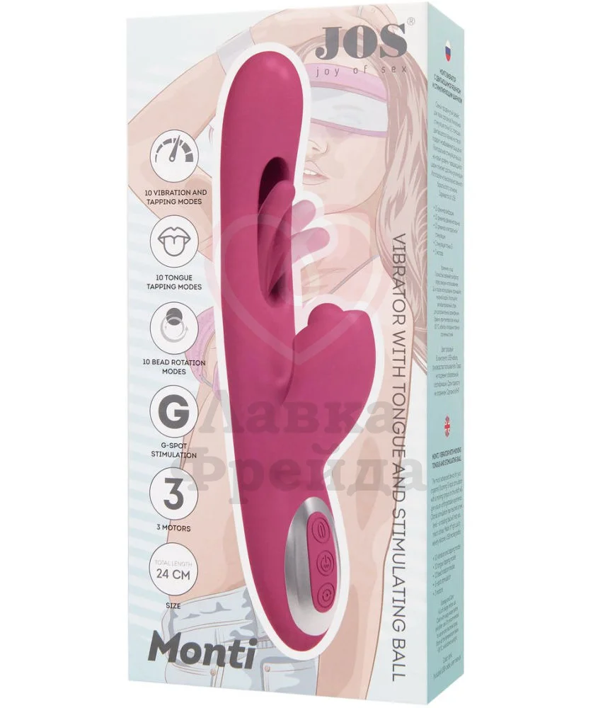 Ярко-розовый вибратор-кролик Jos Monti дарит максимальное удовольствие от одновременной стимуляции клитора и зоны G 10 вибро-режимами разной интенсивности. Клиторальный отросток также дополнен вращающимся шариком, вызывающим волны трепета во всём теле, а основной ствол имеет движущийся язычок с 10 режимами работы, предназначенный для точечной стимуляции зоны G.