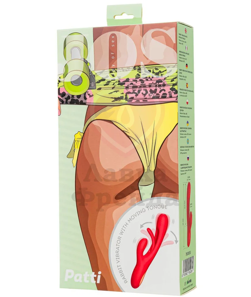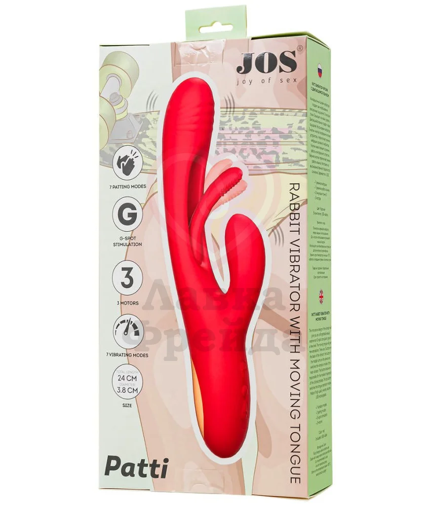 Основной ствол вибратора Jos Patti дополнен подвижным язычком, который будет точечно воздействовать на зону G, нежно массируя и постукивая по ней. Язычок имеет 7 паттернов работы. Удовольствие от вагинального проникновения дополнительно усилят 7 вибро-режимов по всей длине игрушки и небольшой отросток, предназначенный для стимуляции клитора.
