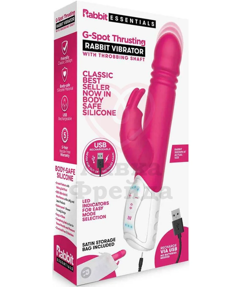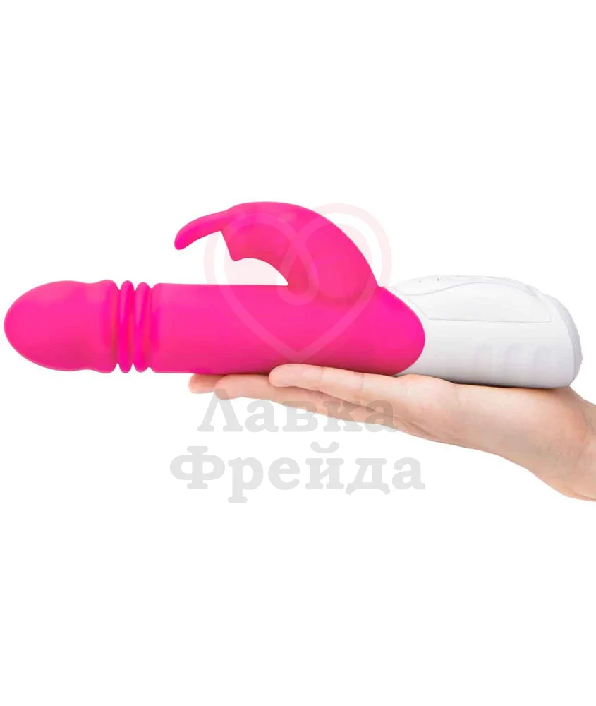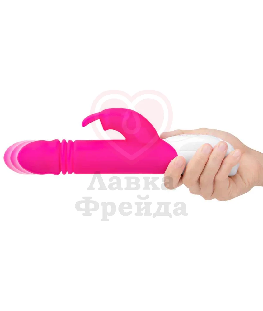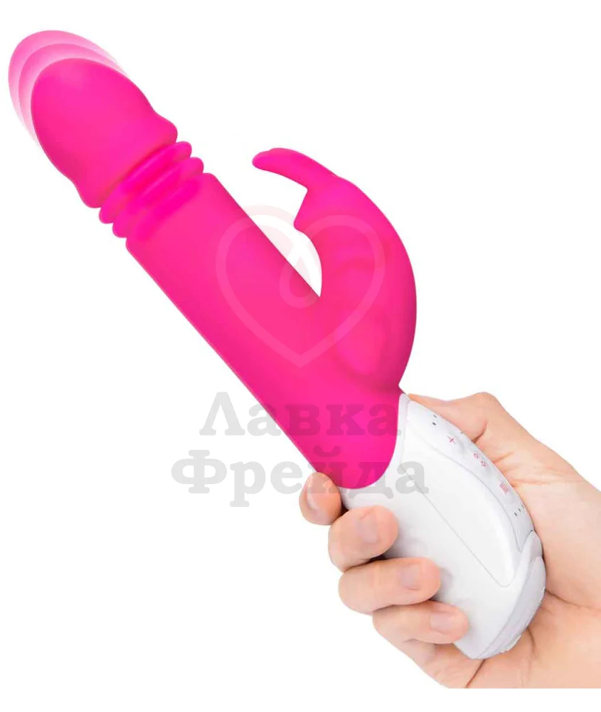 Вибратор-кролик G-Spot Thrusting Rabbit обеспечивает одновременную вагинальную и клиторальную стимуляцию, радуя не только вибрациями, но и пульсирующими движениями головки вверх-вниз, за счет чего идет эффективное воздействие на зону G. Основной и клиторальный отростки работают от разных моторов, поэтому ими можно управлять по-отдельности.