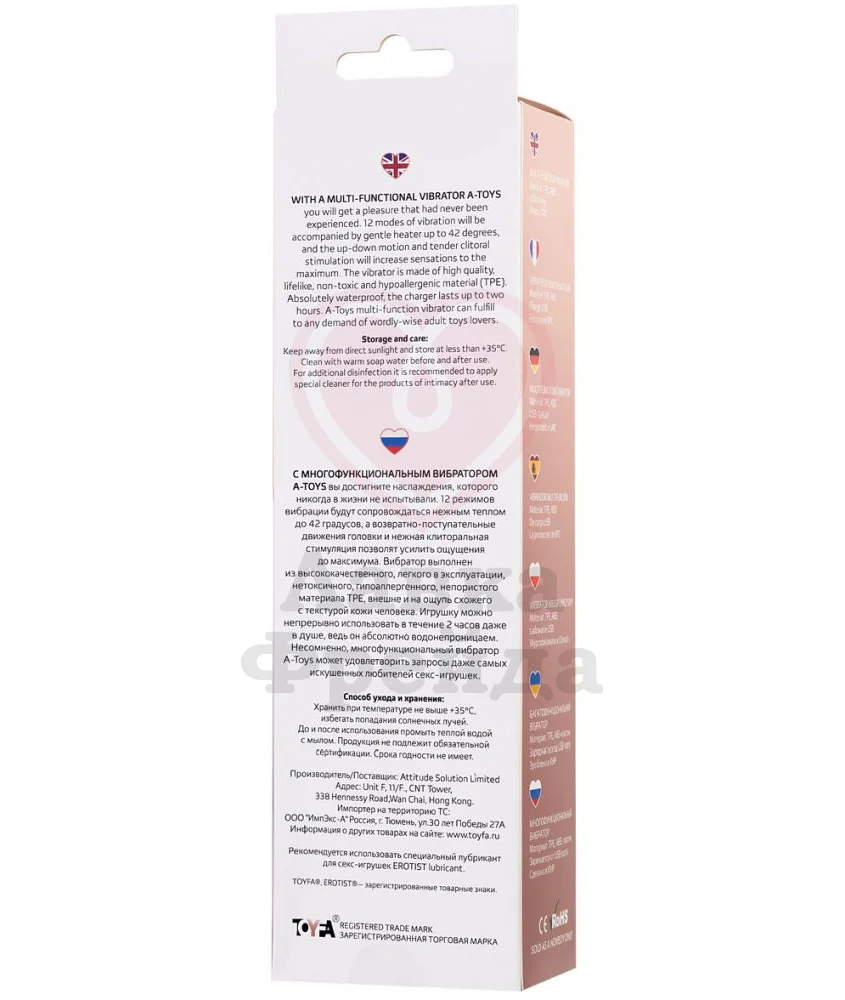 Вибратор-кролик A-Toys by Toyfa Hot shot - реалистичная модель с объёмной головкой, фактурными складками и тремя массажными рёбрами, предназначенными для дополнительной стимуляции внутренних эрогенных зон. Мощный мотор, перезаряжаемый через USB, отвечает за работу 12 вибро-режимов, функцию нагрева до 42 градусов и возвратно-поступательные движения головки, имитирующие настоящие фрикции.