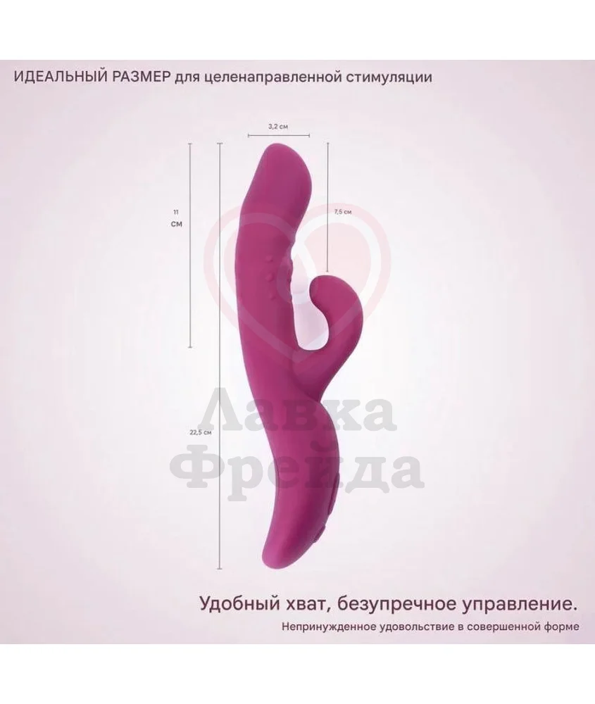 Вагинальный ствол вибратора-кролика Selove Wave дополнен подвижными шариками, которые будут скользить по кругу, стимулируя внутренние эрогенные зоны. Приятные ощущения будет усиливать встроенная функция манящих движений в головке и 7 режимов вибрации в клиторальном отростке, ускоряющих приближение кульминации.