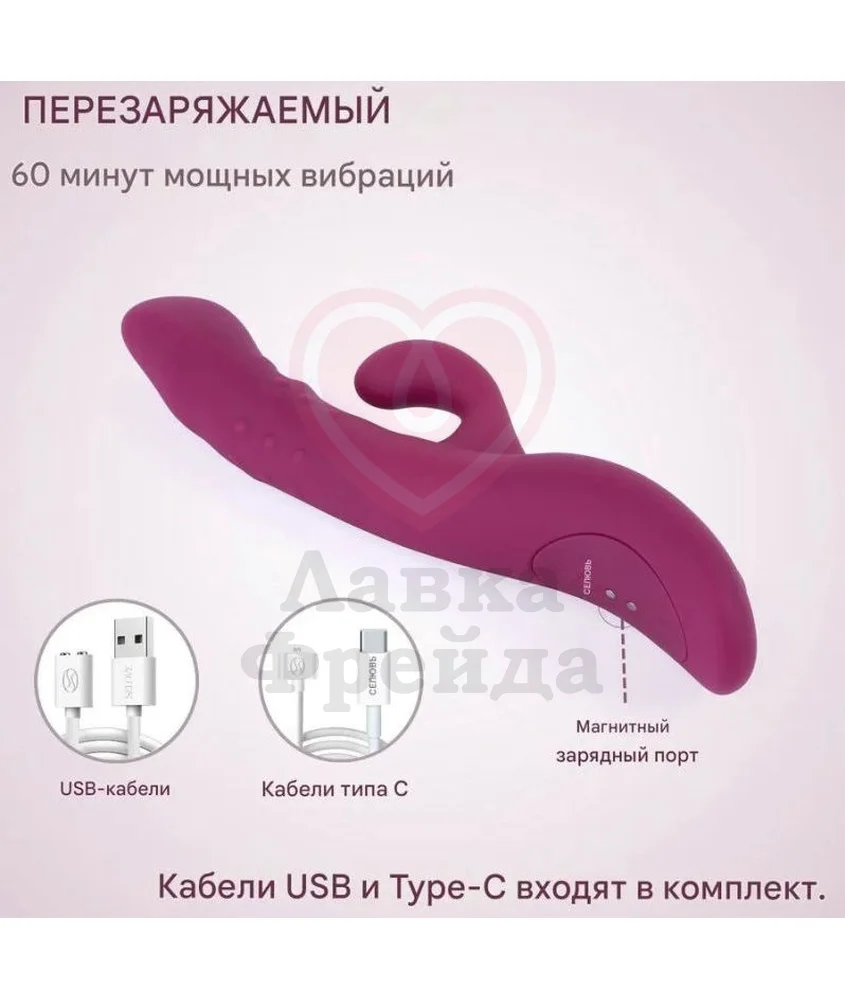 Изготовлен из высококачественного медицинского силикона фиолетового цвета - бархатистый материал, деликатная структура которого совместима с лубрикантами только на водной основе. Полная перезарядка через магнитный порт занимает 2 часа, обеспечивая до 1 часа автономной работы девайса. В набор входят два кабеля - USB и Type-C. Для очистки используйте специализированный антибактериальный спрей для секс-игрушек.