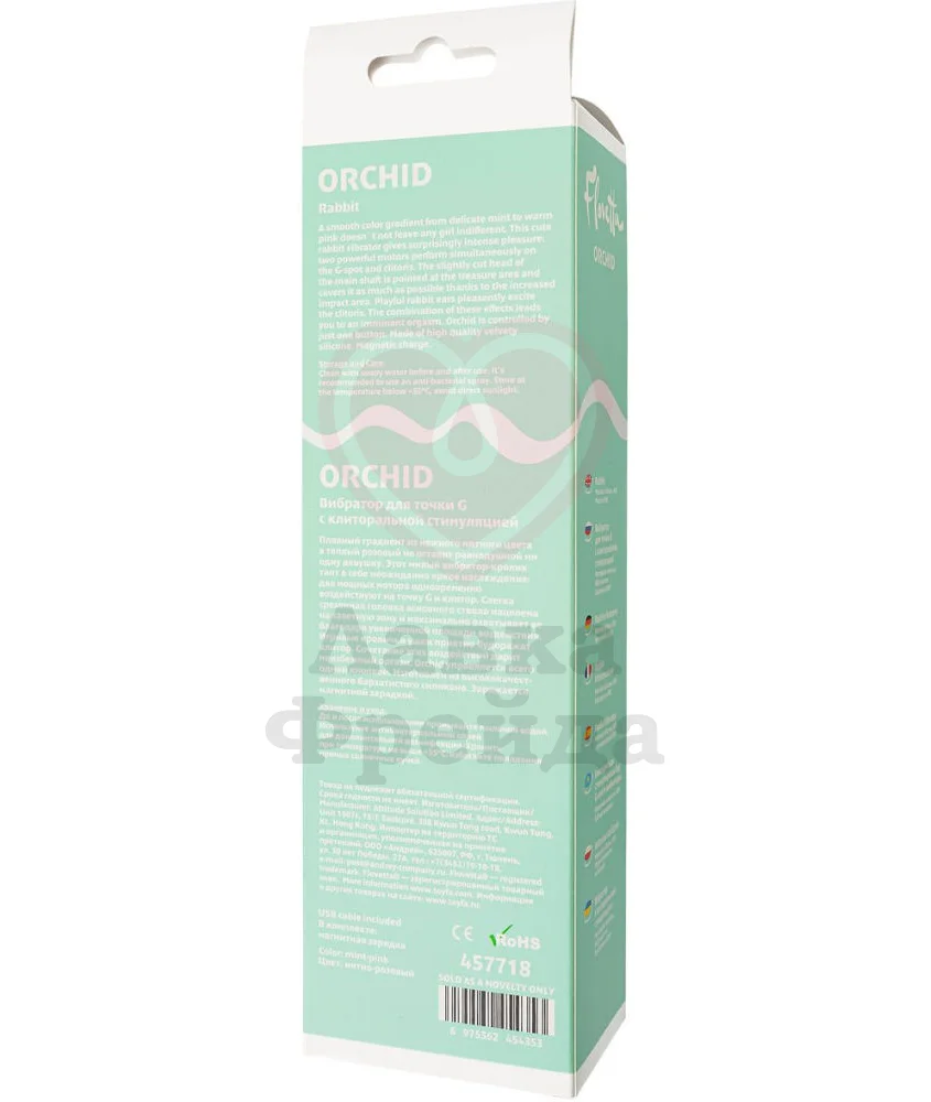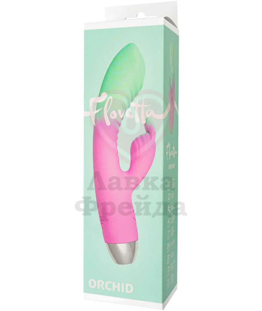 Вибратор-кролик Flovetta Orchid одновременно воздействует на самые чувствительные точки женского тела - рельефный ствол деликатно массирует внутренние эрогенные зоны, крупная усечённая головка точечно стимулирует зону G, а маленький отросток ласкает клитор нежными движениями кроличьих ушек. Два мотора обеспечивают работу 10 паттернов вибрации, переключаться между которыми можно всего одной кнопкой.