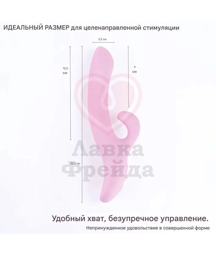Вибратор-кролик Selove Soothe сделан из нежно-розового медицинского силикона - гипоаллергенный материал, совместимый со смазками только на водной основе. Модель предлагает 10 вибро-режимов в вагинальном стволе и 10 паттернов вибрации в клиторальном отростке, позволяя экспериментировать с ощущениями. За счёт лёгкого изгиба головка будет точечно стимулировать зону G, ускоряя приближение кульминации.