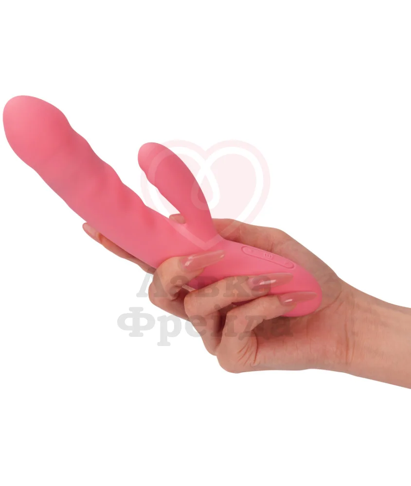 Большой кончик, длиной 9 см и максимальный диаметром 3,3 см, обладает функцией пульсации — поступательными движениями вперед-назад для дополнительной стимуляции. Небольшой клиторальный кончик дополняет полноту впечатлений — вибрацией. Всего доступно 5 вариантов пульсации и 5 режимов вибрации с 5 скоростями, которые управляются отдельно кнопками на ручке игрушки.
