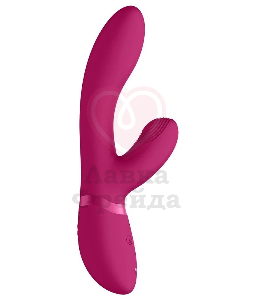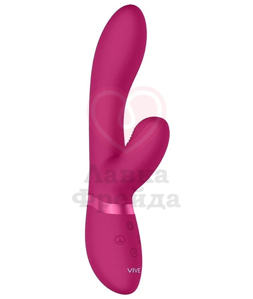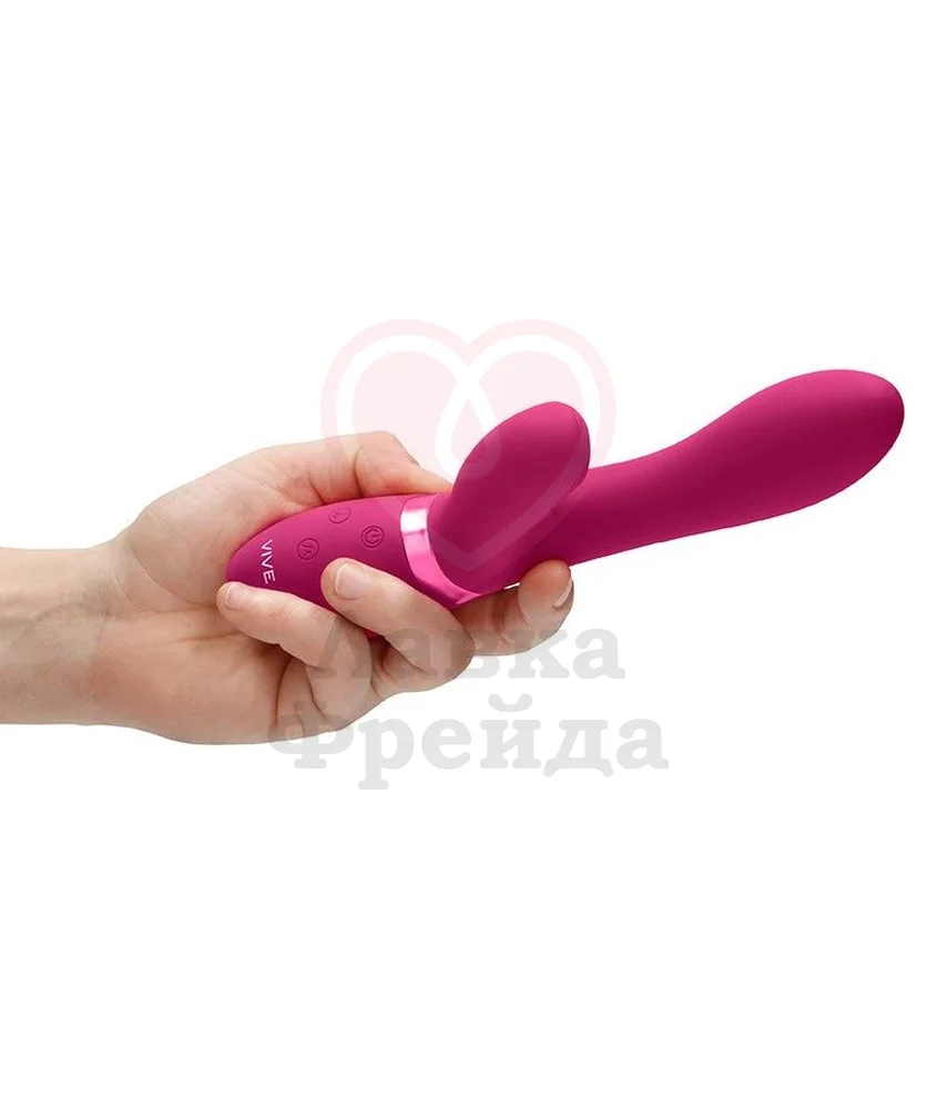Vive Kira от Shots — это вибратор с двумя кончиками и особой функцией пульсации на клиторальном стимуляторе. Удобный дизайн имеет плавные изгибы для лучшего воздействия на чувственные зоны, длина проникновения вагинального кончика 11 см, а максимальный диаметр 3,5 см. Большой кончик имеет 10 режимов вибрации, а вот клиторальный —дополнен рельефом и обладает 10 вариантами пульсирующих ритмов для ярких оргазмов. Части управляются отдельно, а в нужный момент при помощи специальной кнопки можно включить сразу максимальную мощность всей игрушки.