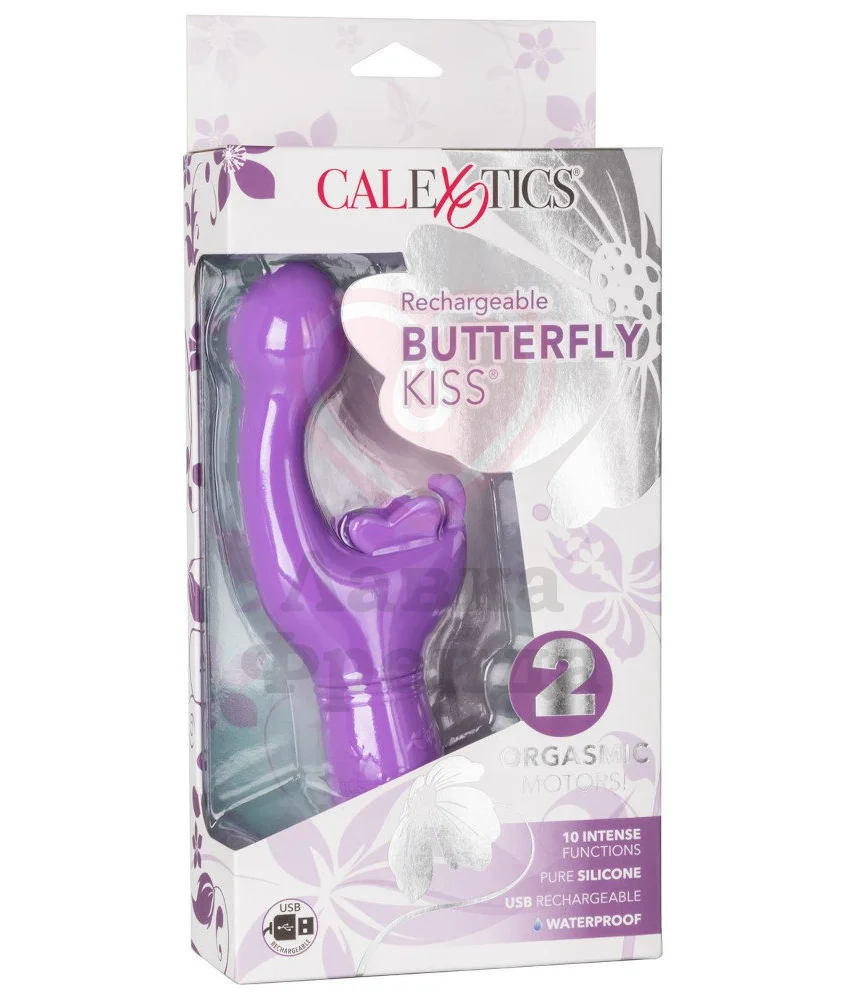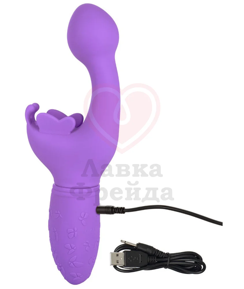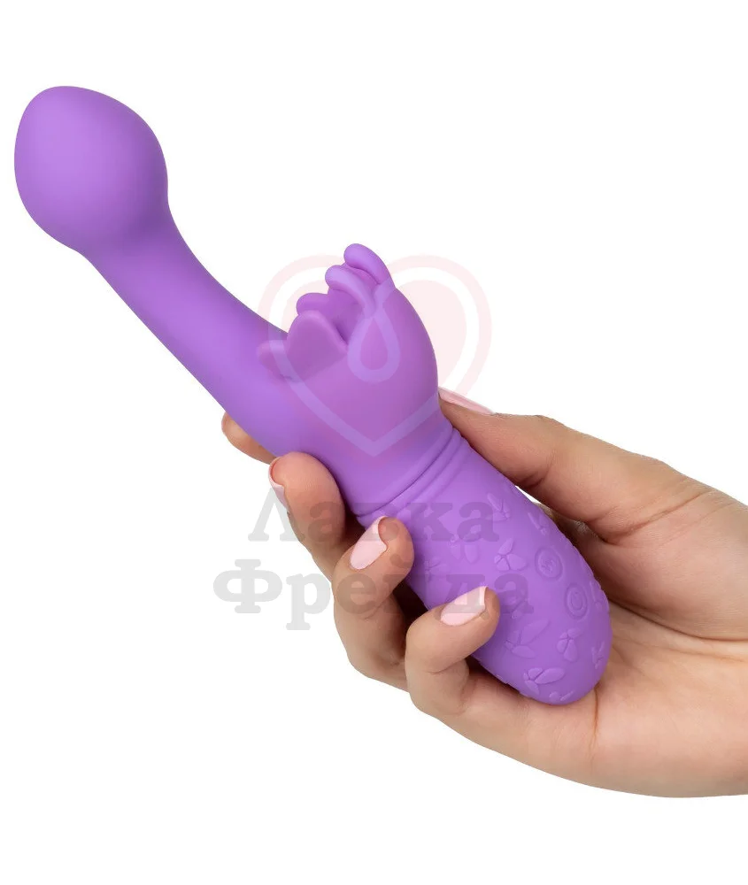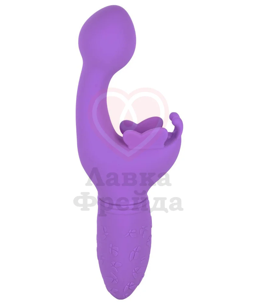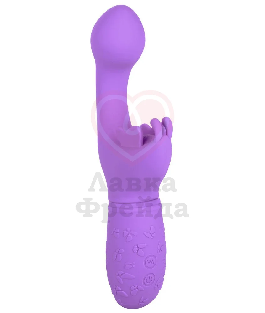 Небольшой вибратор с загнутым кончиком и клиторальным стимулятором подойдет для двойного воздействия на ваши чувственные зоны. Длина проникновения составляет 9 см, а максимальный диаметр округлого кончика - 3 см. Клиторальный отросток выполнен в виде бабочки с крылышками и усиками, которые будут трепетать во время вибрации. Всего у игрушки 10 режимов, чтобы можно было подобрать подходящий для себя вариант.
