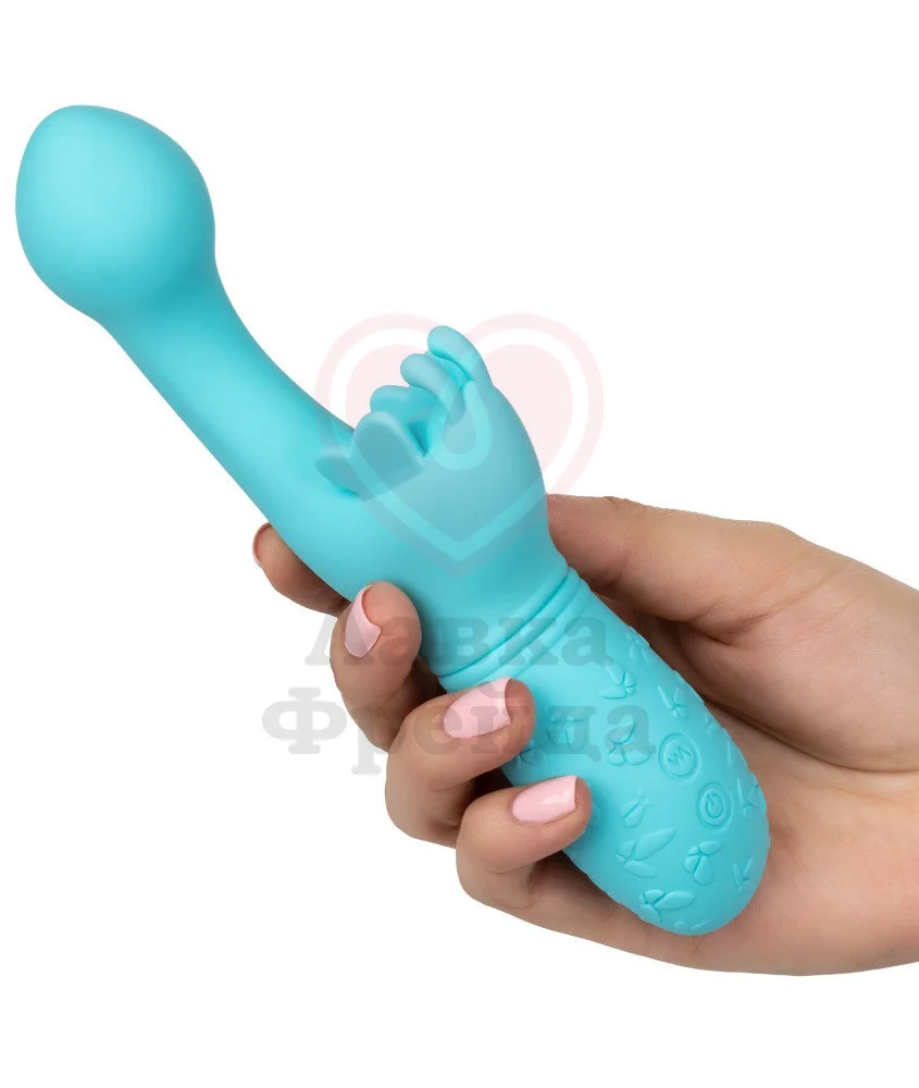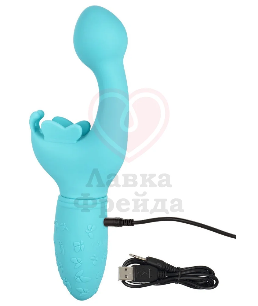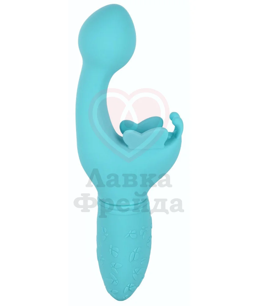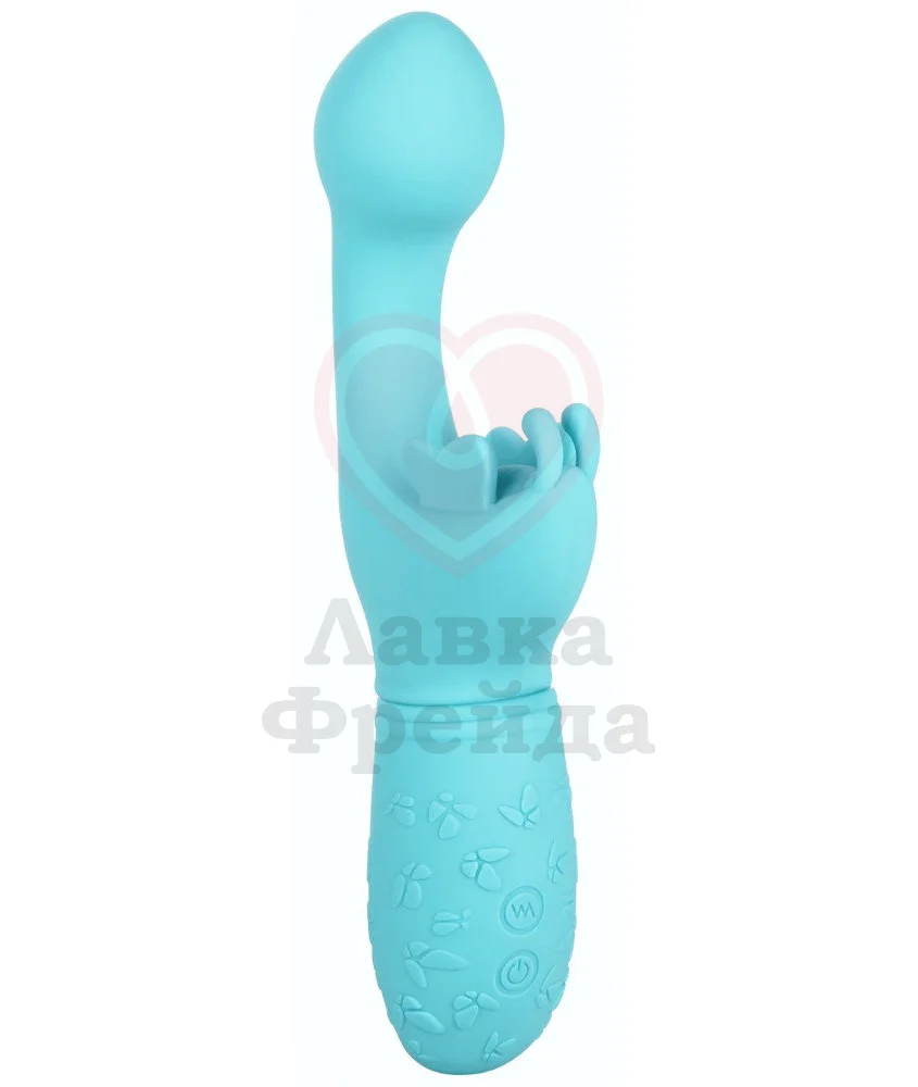 Небольшой вибратор с загнутым кончиком и клиторальным стимулятором подойдет для двойного воздействия на ваши чувственные зоны. Длина проникновения составляет 9 см, а максимальный диаметр округлого кончика - 3 см. Клиторальный отросток выполнен в виде бабочки с крылышками и усиками, которые будут трепетать во время вибрации. Всего у игрушки 10 режимов, чтобы можно было подобрать подходящий для себя вариант.