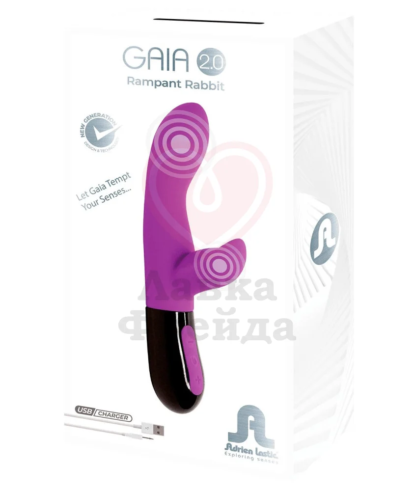 Вибратор-кролик Gaia 2.0 от Adrien Lastic имеет 2 вибромотора и 10 режимов вибрации. Он идеально подстраивается под ваши желания, независимо от того любитель ли вы ярких сильных ощущений или мягкой ласки.