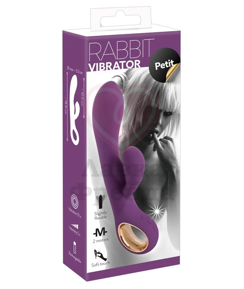 Вибратор You2Toys Rabbit Vibrator имеет два кончика для максимального удовольствия: вагинальный и для клиторальной стимуляции. Двумя мощными моторами можно управлять отдельно, для выбора доступно 10 режимов и 5 скоростей. Версия Petit более компактная, длина проникновения вагинального кончика 11 см, а максимальный диаметр 3,3 см. Ручка-кольцо обеспечивает дополнительный комфорт во время использования. Совмещайте с лубрикантом на водной основе, а также очищайте с водой, мылом и специальным средством.