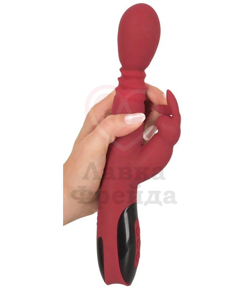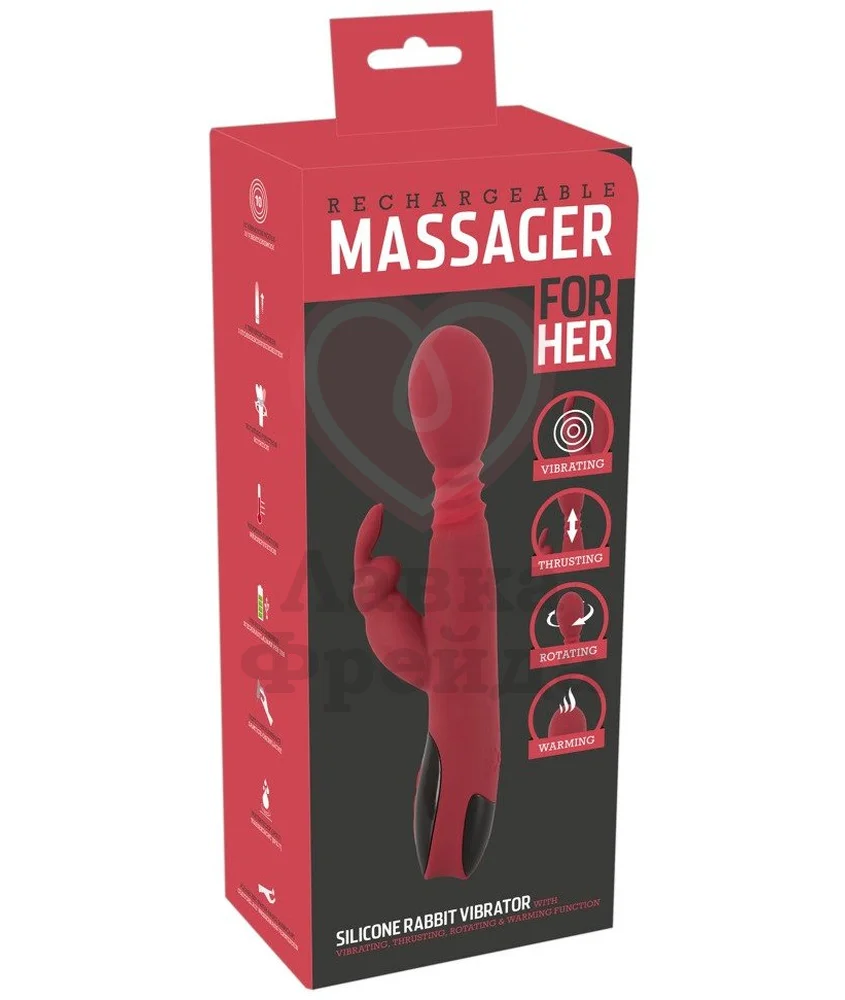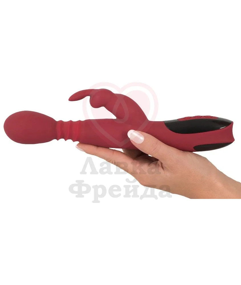 Огненно красный вибратор You2Toys Rabbit Massager for her действительно сможет хорошенько вас разогреть благодаря специальной функции, которая повышает его температуру до 42 градусов. И в остальном этот девайс тоже сможет приятно удивить разнообразием режимов, ведь в нём есть сразу всё: 10 вариантов вибрации, и 3 вида ротации с пульсацией.