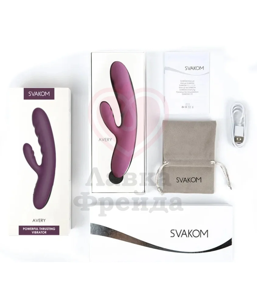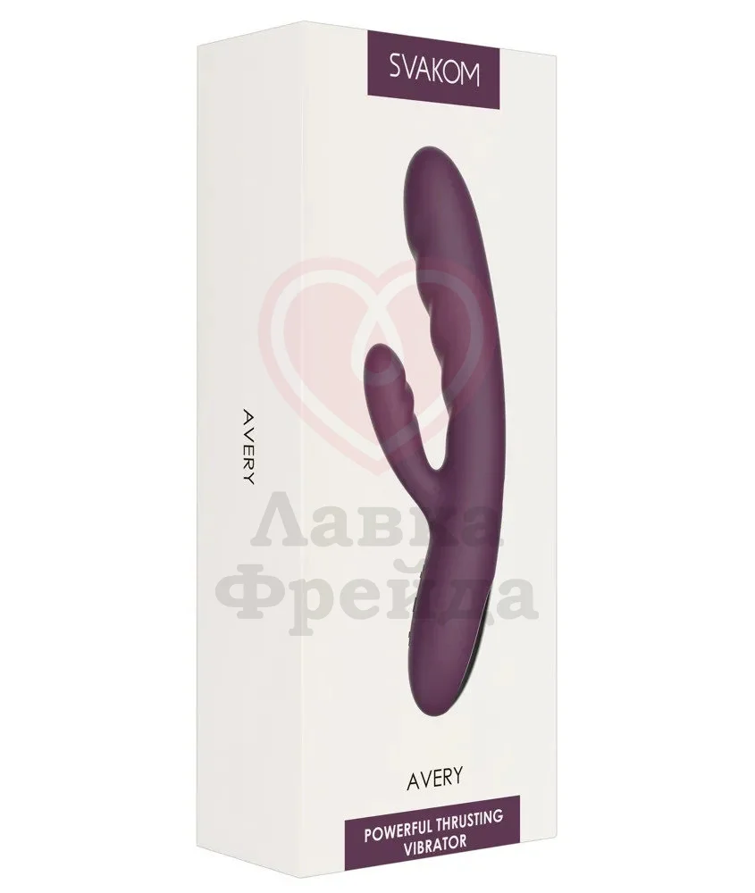 Svakom Avery предоставляет два кончика и две функции в одной игрушке для вашего удовольствия. Вибратор выполнен в классическом стиле — вагинальный и клиторальный отростки предназначены для одновременной стимуляции и наиболее ярких оргазмов.