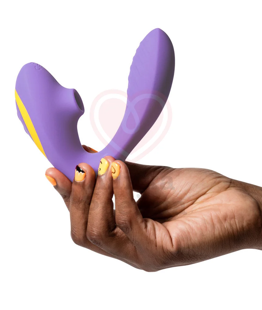 Специальная форма и гибкость материала позволяют подобрать подходящий угол стимуляции, а также слегка настроить игрушку под себя для наибольшего комфорта и эффективности. Рабочая длина вагинального кончика составляет 10 см, а максимальный диаметр до 3,9 см. Две функции игрушки управляются отдельно: на выбор доступно 10 вариантов вакуумной стимуляции, 7 режимов и 3 скорости вибрации.