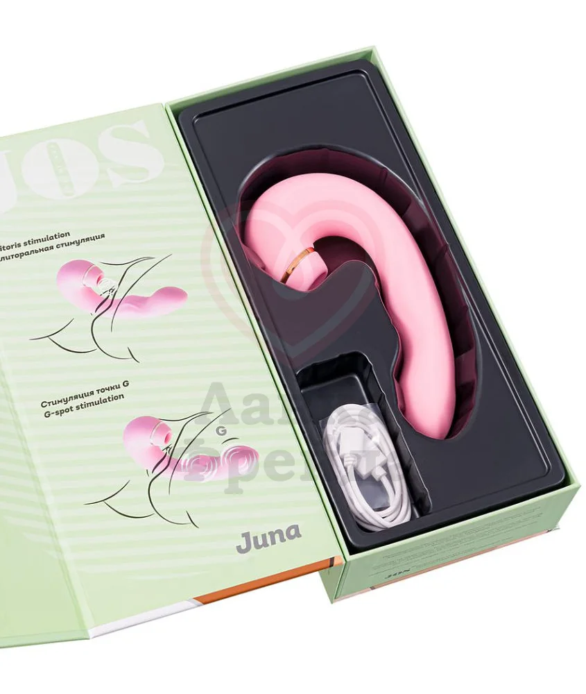 Вибратор Jos Juna доставит удовольствие 10 вибро-режимами погружной части, 5 паттернами пульсации шарика в средней части ствола, а также 5 уровнями вакуумно-волновой стимуляции в клиторальном отростке. Полная зарядка через магнитный USB кабель занимает 1,5 часа, даря до 1 часа непрерывной работы девайса.