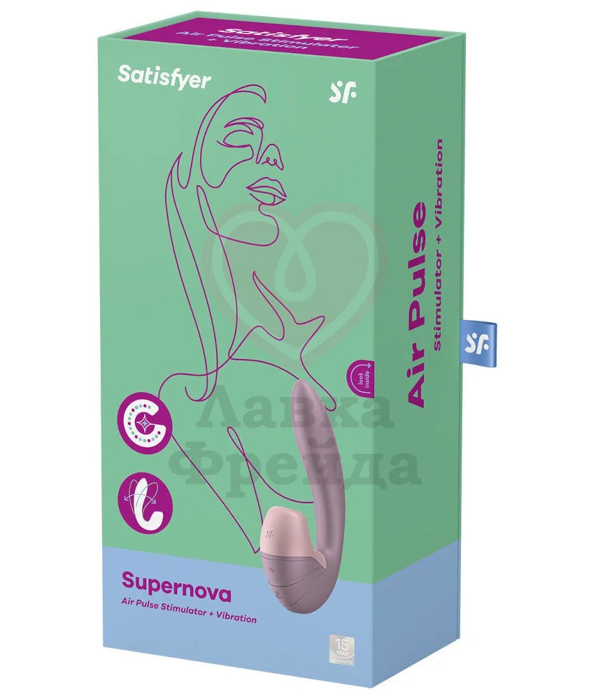 Игрушка Satisfyer Supernova предназначена для единовременной стимуляции клитора и зоны G. Специально для этого представлены 11 уровней интенсивности клиторального отростка, которые подарят чувственные, воздушные пульсации, а вагинальный фиксирующийся стержень - 10 различных паттернов вибрации.